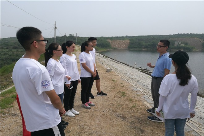 随后,在指导老师桑国庆的带领下,队员们来到了陈家窑村、楼里头村等地继续测量调研工作。在陈家窑村上游水库,指导老师为大家介绍了水库库容、流域汇流面积、作用等知识,帮助大家更好的将课本所学内容与实际生活联系起来,加深对知识的理解。