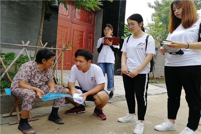 7月15日上午,德赢VWIN学院“筑梦天使”济宁社会实践团到达梁山县寿张集镇倪王庄村,在村里对特殊家庭进行走访并在村内进行问卷调查。