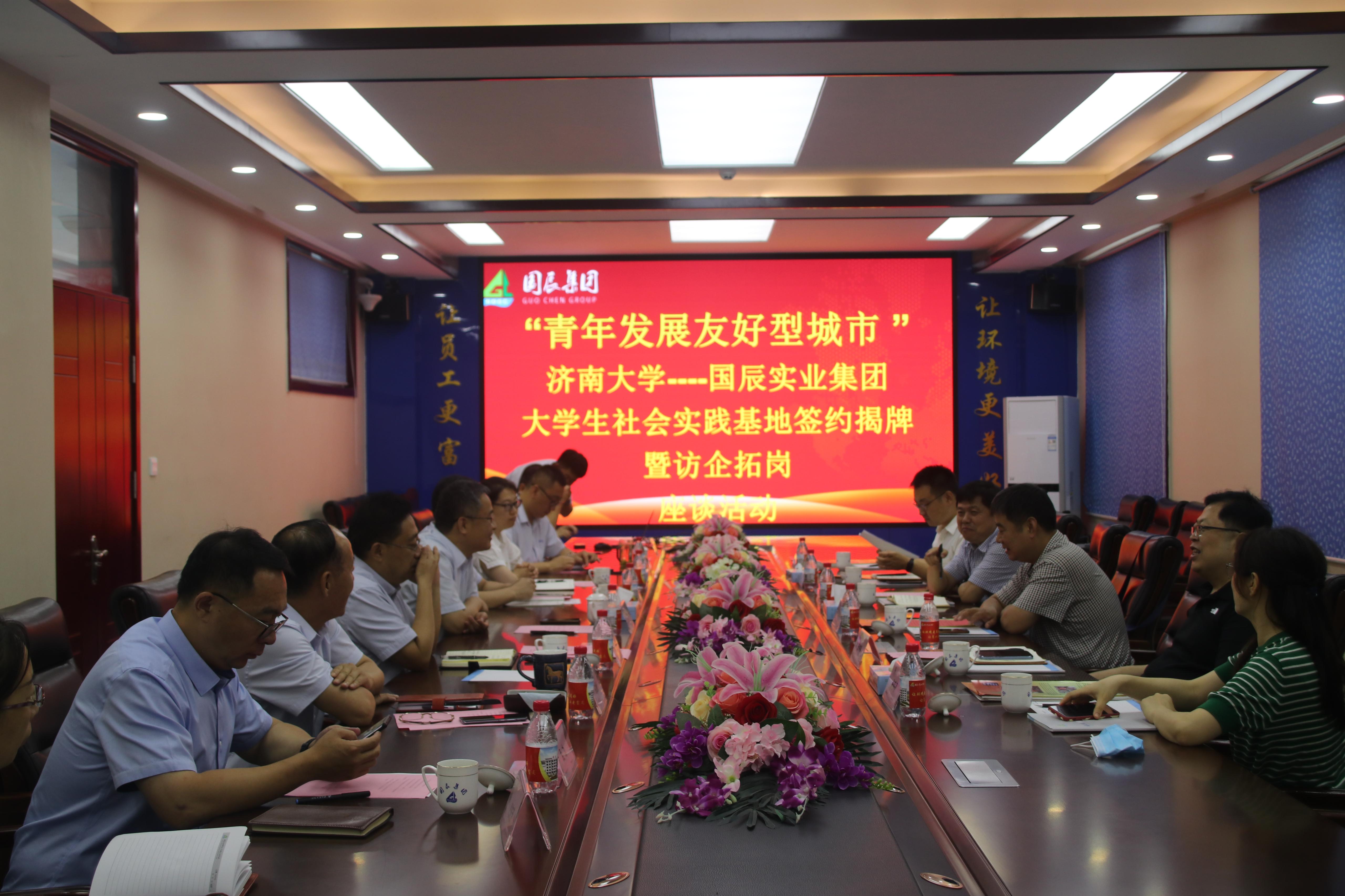为全面深化校企合作,加强人才培养,促进供需对接,7月6日上午,济南大学德赢VWIN学院党委书记王义、副院长王仲鹏一行,赴国辰实业集团举办大学生社会实践基地揭牌暨访企拓岗促就业活动。长清区委组织部副部长李晓林、团区委副书记李志恒,五峰山街道党工委书记张兰伟,党工委副书记、办事处主任彭臻,党工委副书记孟力,国辰实业集团董事长马立新、党支部书记兼总经理马良,德赢VWIN学院教授王立国、副教授许伟颖、环境科学与工程系主任赵春辉、研究生工作办公室主任刘孟頔等参加活动。