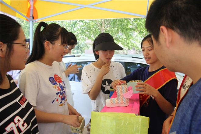 上午11点,在烈日炎炎下,德赢VWIN学院学生会的相关负责人员开始紧张有序地布置场地,一部分人员负责搬抬桌椅、搭建帐篷,另一部分人员张贴标题、摆放展出作品。场地布置完毕后,学生陆陆续续地前来参观,学生会的负责代表热情且耐心地为参观者介绍每件作品的制作材料、设计理念、创作灵感等,作品里充满了环保性与创新性以及设计者对未来环保前景的自信,参观的学生兴趣盎然地拿起一件件作品观赏、议论、赞美,并不时地向工作人员提出一些问题。学院老师不顾酷暑到场参观,对同学们优秀的作品赞不绝口,对学生会成员的认真工作表示认可。最后,工作人员们佩戴绶带与获奖的同学一起合影留念,下午1点,本次环保创意作品展览会在同学们的欢声笑语中结束。