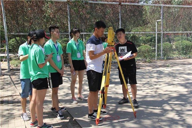 本次大赛共有21支参赛队伍,近百余名选手参加比赛。比赛项目分为用电子经纬仪进行经纬测量和用自动安平水准仪进行水准测量两类,两类比赛同时进行。经纬组选手进行对中、整平、瞄准、读数、记录;水准组选手进行粗平、瞄准、读数。参赛选手们不惧烈日炎炎,沉着冷静地操作手中的仪器,专注严谨地读取每一组数据,充分发挥出娴熟的操作技能,现场氛围紧张而激烈。最终角逐出经纬组和水准组各一等奖1组、二等奖2组、三等奖3组,地理1602班荣获团体奖。本次第四届大学生测量与技术大赛的举办,对于提高学校的学科建设水平起到良好的推动作用,进一步营造了重视将理论与实践相结合人才的良好氛围,为提高大学生的创新精神和实践能力发挥了积极作用。