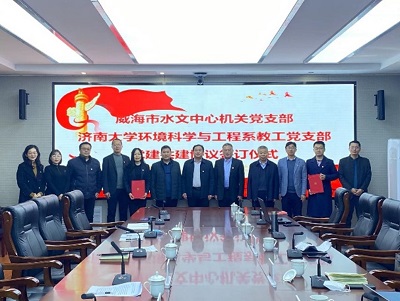 双方进行了“党建+业务”共建签约仪式,签署了“济南大学环境科学与工程系教工党支部和威海市水文中心机关党支部党建共建协议”。