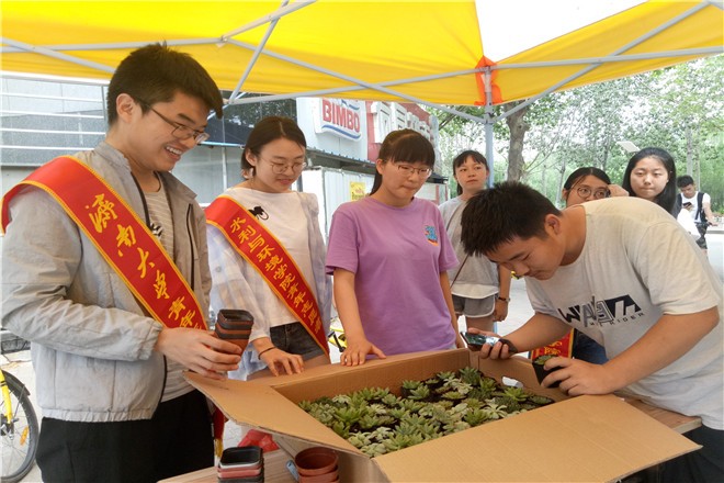 在世界环境日来临之际,为了传递环保理念,积极响应6.5世界环境日主题,鼓励大学生亲身参与绿色植物种植行动,积极唤醒全国大学生环保意识,6月2日上午十时,德赢VWIN学院青年志愿者协会在八食广场开展“生态创建携手共进,绿色生活你我同行”绿植领养活动。