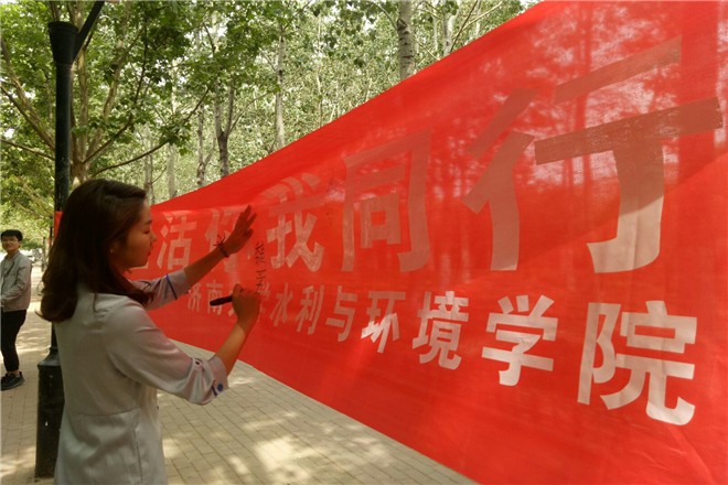 活动分为两个环节,首先,由志愿者们排队依次在条幅上签字,以实际行动共同响应“绿色生活”的号召,志愿者们写下的每一笔都承载着他们共同的心愿,意志及允诺。随后,志愿者们来到绿植领养的活动地点,开始摆放植物。志愿者们向路过的同学叙述活动内容,当同学们了解到可以免费领养多肉植物后,便纷涌而至。此次绿植领养活动中的多肉植物受到了不少同学的青睐,志愿者准备的多肉植物很快就被热情的同学们领养一空。