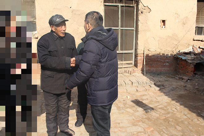 严寒阻挡不住家访小组的脚步,老师们来到刘同学家中,刘同学的爷爷热情地招待老师们进屋取暖,家访小组看到古朴的土房子里是砖头地面、木头门窗,在寒冷的冬天屋里竟没有暖气,有的只是燃着的火炉。黄处长、徐院长与学生家长倾心交谈,向家长反映了学生在校的学习、生活等各方面情况,期间多次真诚地感谢爷爷奶奶的辛苦付出,培养出了如此优秀的孩子,小刘同学的辅导员尤其肯定了她的在校表现,对其所取得的优异成绩提出了表扬。随后,侯书记向小刘的爷爷奶奶介绍了学校、学院对家庭经济困难学生“奖、贷、助、补、勤”等资助政策和帮扶措施,让小刘同学适当关注这些信息,勉励她克服家庭经济上的困难,勇于承担家庭责任,用实际行动回报家人、回报学校、回报社会,并将慰问金和慰问品交到小刘同学奶奶的手中。刘同学的爷爷奶奶不停地表达着感谢,最后依依不舍地与家访小组送别。刘同学也承诺以后会更加努力,珍惜来之不易的学习机会,顺利完成学业,将来回报社会。