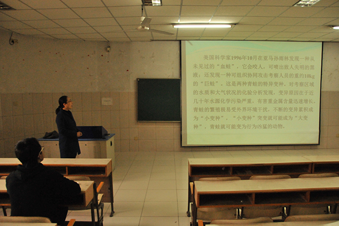 讲座伊始,何老师通过展示大量的生活案例,引出本次讲座主题:环境激素污染物。随后,何老师就环境激素污染物的概念、种类、来源、影响以及危害等方面,向同学们做详细讲解。在讲解过程中,何老师联系人们日常生活行为,在加深同学们对环境激素污染物的理解的基础上,也让他们明白环境激素污染物无处不在。最后,同学们纷纷表示应在日常生活中提高自我环保意识,从身边小事做起,关注自身健康,远离环境激素污染。