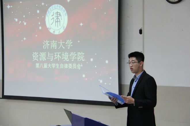 10月18日中午,迎着党的十九大的召开和济南大学六十九周年校庆的东风,资源与环境学院第八届自律会成立大会在第十一教学楼401教室召开。学院自律会指导老师、2017级学生辅导员尹鑫老师参加本次大会,第八届自律会全体学生干部到场参加。