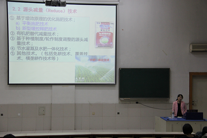 讲座伊始,徐立荣老师先向同学们表达出自己对地理科学专业的喜爱以及对地理科学专业学生认真积极的学习态度的赞扬。随后徐老师从四个方面进行讲述,一是认识农业面源污染,他以数字和图表的形式向同学们展示农业面源污染严重的现象;二是了解农业面源污染防治技术,徐老师为在场的同学们一一介绍了国内现有的防治农业污染面源的先进技术;三是对美国中北部防治经验的介绍,徐老师根据国外的事例向全体学生讲述国外对农业污染的防治技术;四是当代大学生面对农业面源污染应该做些什么,徐老师呼吁全体学生努力学习地理科学专业知识,为解决农业面源污染问题贡献自己的力量。最后,徐老师期待同学们在地理科学专业能够取得巨大成就,破解未解决的问题,创造更多的奇迹。