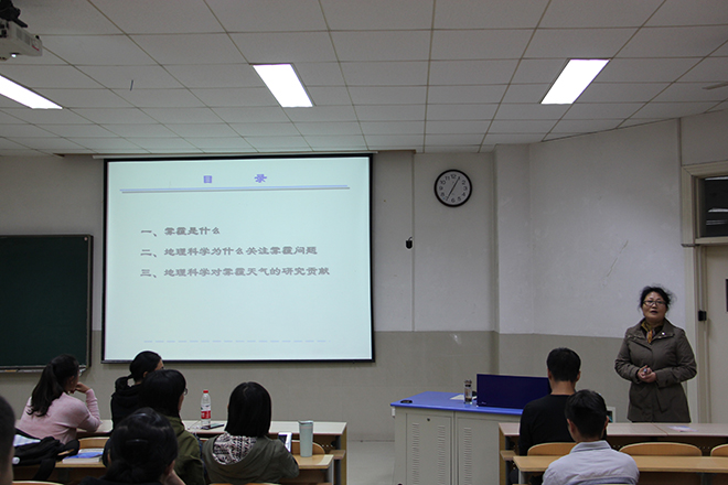 讲座伊始,周老师对新生们的到来表示欢迎与祝贺,并鼓励同学们积极参与+到即将开展的新生研讨课中去。随后,周老师通过数据列举与图表展示,从雾霾是什么、地理科学为什么关注雾霾问题、地理科学对雾霾天气的研究贡献三个方面揭示了雾霾与地理科学之间的紧密联系。最后,周老师对整场报告进行总结,呼吁同学们认真学习专业知识,合理利用网络、图书馆等资源丰富自我、关心环境,时刻谨记“同呼吸共责任”的环保理念,增强节能环保意识,养成良好的环保习惯。