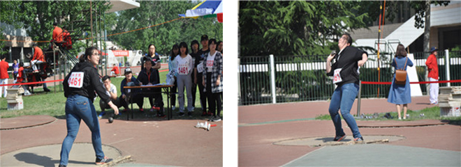 比赛开始前,运动员们在相应比赛场地集合后,认真进行俯卧预热、投掷练习等准备活动,提前适应比赛环境。选手们个个精神饱满,跃跃欲试。随后,学生女子铅球比赛在欢呼声中拉开帷幕,资源与环境学院张楠同学进场后,双腿分立身体下蹲,右手举起铅球置于脑后,咬紧牙关,凝聚力气,背过上身加速旋转,在最后一瞬,右手猛然一挥抛出铅球,铅球在空中划出一道优美抛物线,落在竞技场上。观众席瞬间迸发出热烈掌声与欢呼声。最终张楠同学以自己真正实力与永不言败的精神在众多强大的选手中脱颖而出,取得七名好成绩。