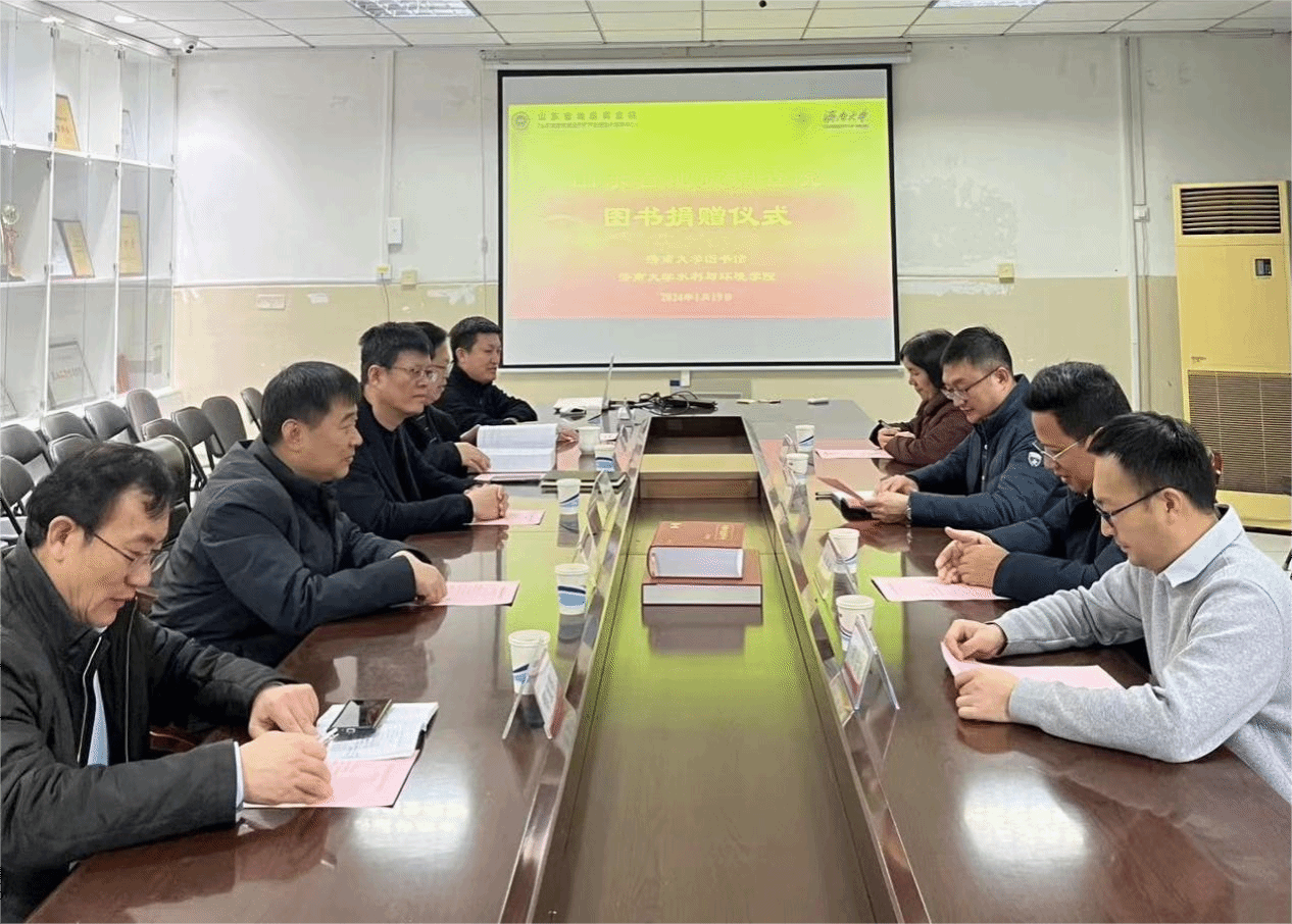 1月19日下午,山东省地质调查院《中国区域地质志·山东志》赠书仪式在济南大学德赢VWIN学院举行。山东省地质调查院副院长朱恒华、技术质量科主任张华平、水文环境地质所所长刘春华、副所长刘治政,济南大学图书馆馆长王爱国,德赢VWIN学院党委书记王义、常务副院长王仲鹏及部分教师代表出席仪式。