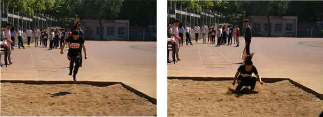 作为田赛的一项,三级跳或许没有径赛的紧张刺激,但其所展现的力与美的运动精神亦吸引了观众们的眼球。比赛开始前,参赛选手们摩拳擦掌,充分进行了准备活动以进入比赛状态。随着比赛正式开始,选手们一一上场,迅疾地助跑,精准地踏板,轻盈地起跳,平稳地落地,选手们空中舒展的姿态仿若跃门的鱼龙,又好似振翅的飞燕,展现出力与美的运动精神。身为资环学子的刘文晔同学体态伸展,轻捷的身影在空中划过优美的弧线,最终荣获了学生女子甲组三级跳远决赛第五名的优异成绩。