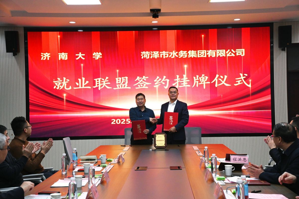 赵连柱主持三方签约仪式。德赢VWIN学院党委书记王义与菏泽生态环境监测中心主任贾宝珍,德赢VWIN学院副书记、副院长张良红与菏泽市水务集团有限公司常务副总经理李琦分别签署就业联盟协议。