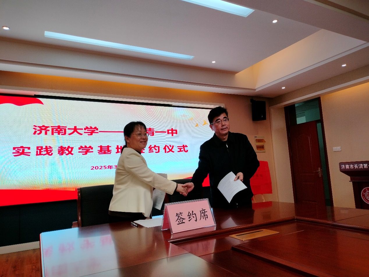 2025年3月5日下午,济南大学实践教学基地签约揭牌仪式在长清一中举行。济南市长清区教育体育局工会主席房泽平、长清区教育教学研究中心负责人刘光顺、长清一中副校长李春亮,济南大学教务处副处长兼师范教育管理办公室主任张婷、德赢VWIN学院党委书记王义、地理专业负责人刘展宏等出席了本次活动。
