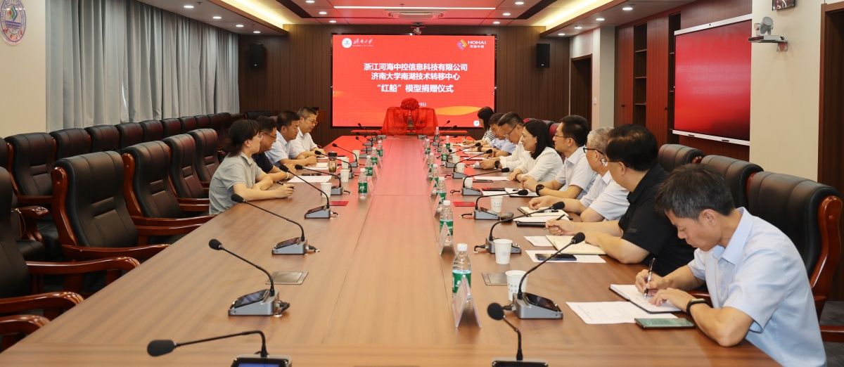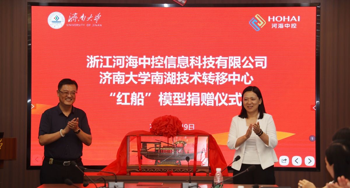 9月9日,在第40个教师节来临之际,我校校企合作伙伴,浙江河海中控信息科技有限公司为学校捐赠“红船”模型一个。公司董事长、九三学社社员朱骏玮一行4人,学校党委常委、副校长商华,党委常委、组织部部长滕晋,党委常委、统战部部长徐庆国出席捐赠仪式。学科建设与发展规划处处长、九三学社济南大学委员会主委徐征和,德赢VWIN学院党委书记王义,常务副院长王仲鹏,济南大学文学院院长、九三学社济南大学委员会副主委范丽敏,科技成果转化办公室副主任张志国、统战部等有关负责同志参加捐赠活动。徐庆国主持捐赠仪式。