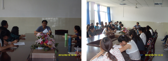 会议伊始,闫副院长指出:在2012年大学生研究训练计划中,我院共成功申报立项51组,创学院历史新高,同时领先于我校其他学院。接着,闫副院长鼓励同学们积极投入到科研项目中去,为我院在本次活动中能取得优异的成绩而努力,并宣读了将要对在本次活动中表现出色的同学采取的奖励措施。随后,闫副院长对同学们的结题报告提出了一些要求,并结合以往的优秀报告给了大家一些建议,他希望同学们能通过此次科研活动提升本团队的综合能力。同学们也纷纷表示会秉着严谨负责的态度,保持一如既往的热情,全身心的投入到本次科研活动中。最后,会议在掌声中圆满结束。