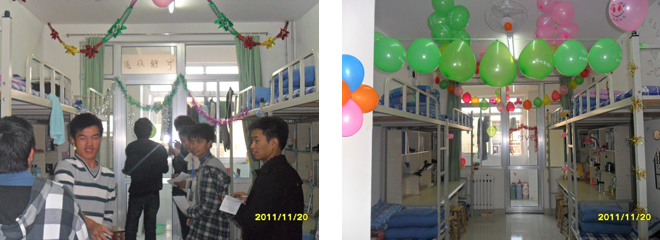 此次活动是“宿舍文化节”包含的活动之一,其目的是美化宿舍环境,从而显示出我院和谐、积极向上的文化特色。首先,舍管部部长朱琳给舍管部各成员作了具体分工安排,检查活动随后开始。宿舍外,门上贴着的各式各样的小标语,充分体现出了“宿舍是我家”的主题;宿舍内,充满创意的DIY,意气方遒的毛笔字条幅,各种气球的拼图等装饰赢得了检查人员的阵阵惊叹。同时,寝室内的同学们也热情地为舍管部成员介绍了自己宿舍的各种装扮,检查人员的的友好态度和宿舍同学的的热情接待进一步诠释了“和谐宿舍”的主题。经过一个多小时的检查,舍管部成员对寝室装扮的评选接近了尾声。他们表示,评比结果将以最快速度公示出来。