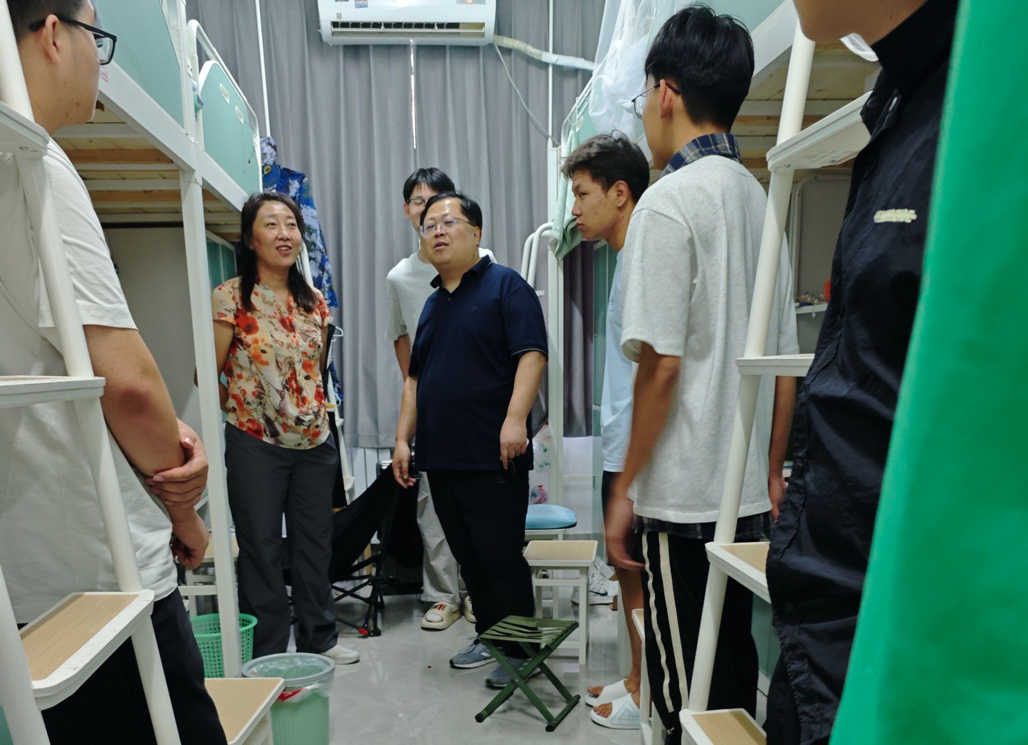 学院领导班子走访新生宿舍,了解新生适应情况,提醒新生注意人身安全、财产安全,提升反诈骗意识,鼓励大家团结同学,积极参与校园文化活动。