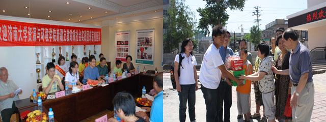 7月14日上午10点,盲校领导在盲校校史展览室专门为济南大学资源与环境学院暑期“三下乡”新疆助残支教社会实践活动举行了欢迎仪式。出席仪式的有:新疆维吾尔自治区残联委员会委员、残疾人就业办公室主任杨必留、乌鲁木齐市盲校校长刘家君、党委书记夏丛修、副校长谷永丽、副校长周海燕、部分特教教师和盲生代表。欢迎仪式由刘家君校长主持,盲校夏丛修书记介绍了盲校的历史沿革、师资现状与发展规划,夏书记还充分表达了对济南大学助残支教社会实践团的欢迎之情。之后,济南大学资源与环境学院陈卫东副书记向盲校的领导老师们介绍了学院的基本情况和此次新疆助残支教社会实践活动的宗旨和目的,并对实践团下一步的具体工作提出了明确要求,陈书记还就盲校给予新疆助残支教社会实践团活动的大力支持表示感谢。随后,实践团的同学与盲童们展开亲切友好的交流活动,盲童马力克为大家献上一曲《我的中国心》,实践队员则向盲童们赠送了准备好的慰问品。欢迎仪式在友好热烈的气氛中圆满结束。