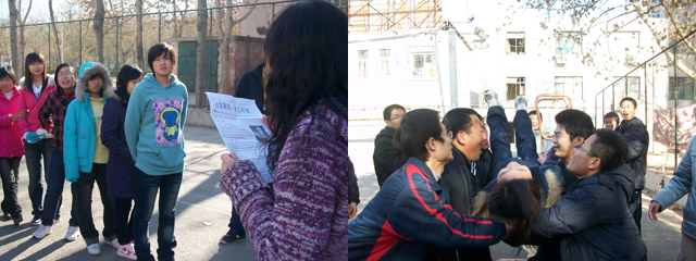 上午10点,同学们准时到达网球场,虽然天气寒冷,但大家都热情高涨。首先,同学们进行了三个“团队小游戏”。在经典的“倒摔”游戏中,同学们战胜了自己心里的恐惧,对队友完全信任,充分激发出了同学们的团队合作意识。随后,各队队长对大家在游戏过程中的表现及合作情况进行了总结,并把自己收集的心理健康方面的知识与大家进行了分享。最后,自律会心理健康部成员对本次班会进行了精彩点评。
