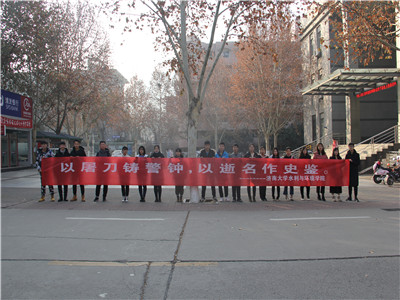为增强同学们对先辈们无私奉献、英勇奋战的历史战绩的了解,增进对曲折历史的认识,不断增强其爱国主义情感,推动同学们理性理智爱国。12月16日,德赢VWIN学院组织志愿者们在第八食堂广场开展“勿忘国殇”条幅签字活动。
