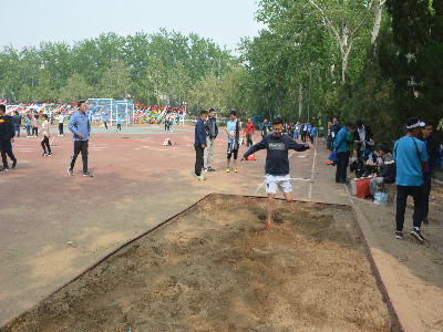 跳远主要考验运动员身体下肢的爆发力与弹跳力,比赛开始之前,参赛选手们积极地做着拉伸、弹跳等热身运动,以便尽快使身体达到最佳状态。在裁判员的指令下,参赛选手各就各位,比赛正式开始。令人期待的白健老师、郝伟相继上场,他们起跑迅猛,步伐矫健,速度快速提升,踏板准确,快速用力蹬地,向前上方腾空跃起,在空中划出一条美丽的弧线,最终双脚稳稳扎入沙坑。老师们脚蹬手摆动作协调,空中展体充分,动作连贯,一气呵成。观众们对老师们的亮眼表现报以热烈的喝彩声,响亮的口号令人震撼,在随后的几次跳跃中,白健老师、郝伟老师依旧表现优秀,不断挑战自我。经过激烈的角逐,最终白健老师、郝伟老师分别获得了第四名、第七名的佳绩。