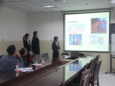 答辩会上,选手们结合ppt从选题目的、研究过程及结论、项目应用及效益分析、研究成果等方面向各位老师详细介绍了参赛作品——“新型过氧化亚硝酸盐比色荧光探针的构建及基本应用”的基本信息和优势。随后,朱教授根据介绍过程中存在的问题以及后期项目运营存在的实施困难提出质疑,并结合各个项目本身的特点,为同学们提出专业中肯的改进建议和战略性指导,鼓励他们要不断积累,进一步完善训练计划。白老师则建议参赛选手着重展现实验过程,突出项目自身特色,展现项目优势,同时注意学术语言的使用,加强PPT的美观性、可读性,他鼓励大家要以积极严谨的态度和足够的信心去直面比赛。参赛选手们都表示在此次模拟答辩会中受益匪浅,本次模拟答辩会在评委与同学们的思维碰撞中圆满结束。