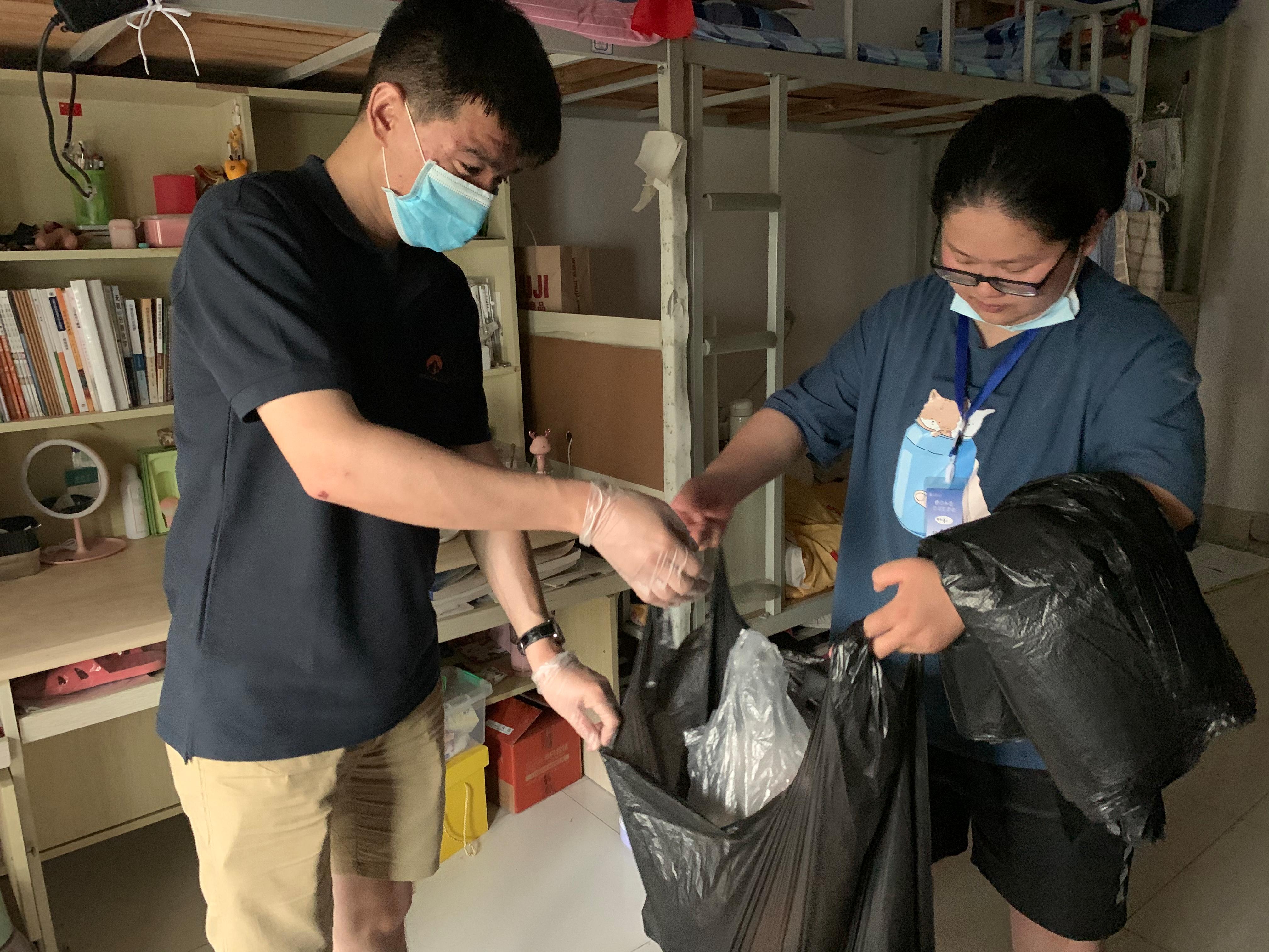 在清洁整理的过程中,老师和同学们积极投入,分工合作,配合密切。首先,检查每个宿舍中潜在的安全隐患,进一步检查学生宿舍内的桌椅、水电、空调以及墙壁等设备设施情况。认真把学生放假时没有及时扔掉的垃圾全部打扫干净、凌乱的床铺整洁一新、书桌物品摆放井然有序,小花小草也重新浇了水。为有需要的同学提供了晒被子、清垃圾、护绿植、寄快递等帮助。通过大家共同努力,宿舍内数月蒙上的灰尘也被打扫得干干净净,公寓环境卫生干净整洁,校容校貌焕然一新。贴心的服务、周到的考虑,让学生惊呼感到了万般“宠爱”。