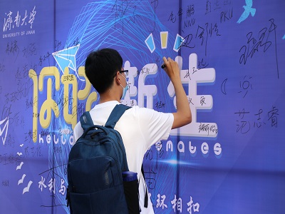 除常规迎新工作外,德赢VWIN学院今年围绕“水环与你环环相扣”主题进行几点创新迎新安排。第一,迎新活动现场准备了迎新签名展板,新生们认真的在展板上签下自己的名字,手持“确认过眼神,你我都是水环人”“扣好人生每一粒扣子,过好大学每一个日子”等标语展板与家长合影留念作为“开学第一课”。第二,新生们在报到时都收到了印有“水环与你环环相扣”字样的手环与小风扇,做为新生的入学纪念。第三,“一见钟情,两心欢喜,三生有幸,四年水环我陪你”宿舍楼门前早已悬挂好的趣味横幅,让不少第一次离家的新生感受到了温暖。