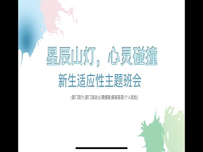 为帮助新生更快的适应大学,解决新生在新环境中所面临的种种问题,并对大学生活抱有积极进取的生活态度,10月16日晚,德赢VWIN学院自律会心理健康部组织召开“星辰山灯,心灵碰撞”新生适应性教育心理主题班会。