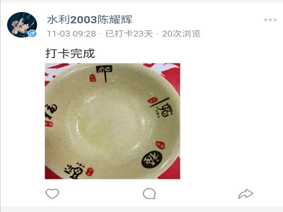为进一步倡导光盘行动,德赢VWIN学院环抱碧水青年志愿协会于10月5日至11月8日开展“光盘行动,从我做起”线上打卡活动。