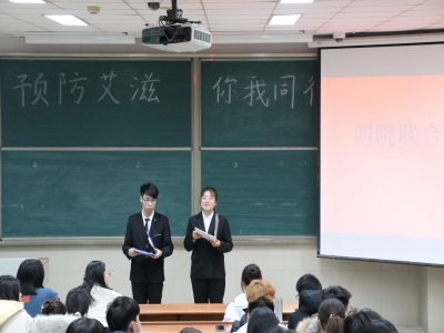 为提高广大学生对HIV病毒引起的艾滋病的认知,唤起当代大学生对艾滋病预防的重视,济南大学德赢VWIN学院、外国语学院、机械工程学院、信息科学与工程学院于12月13日周日晚19:00在第十一教学楼第一段401室联合举办了“预防艾滋,你我同行”防艾宣讲活动。