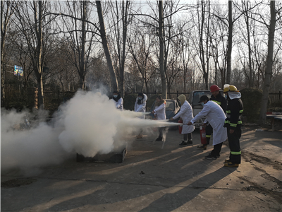 演练开始前,庞桂斌副院长强调了冬季做好校园防火工作和实验室安全的重要性,并指出此次演练将有利于扩大师生的防火知识储备,强化大家的消防安全意识。他要求大家充分利用本次演练机会,将防火知识切实转化为灾害条件下逃生自救的实战技能。学校安全管理处消防管理科赵玉琦强调了灭火器的重要性,介绍灭火器的分类,对如何正确使用消防器材、火灾现场的应急处置方案、灭火器的使用原理以及相关的注意事项进行了讲解,并进行灭火操作。随后,师生们拿起灭火器进行实际操作,熟练地按照灭火的步骤和方法,将汽油燃起的浓烟大火快速扑灭。