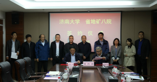 4月14日上午,济南大学与山东省第八地质矿产勘查院共建毕业生就业实习基地和本科实践教学基地签约揭牌仪式在山东省第八地质矿产勘查院举行。山东省第八地质矿产勘查院党委书记、院长李星传,党委副书记张辉,副院长马登贤、朱伟,济南大学德赢VWIN学院院长徐征和、副院长庞桂斌、学院办公室及学科专业负责人等同志出席揭牌仪式。仪式由李星传书记主持。
