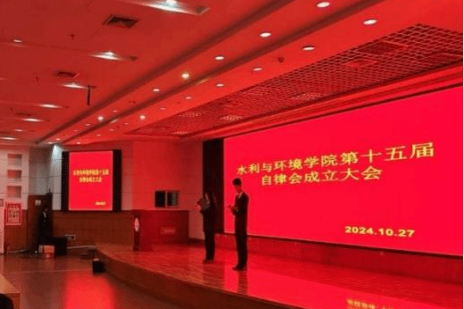 大会伊始,自律会干事代表褚学哲上台发言,表明身为新鲜血液,将会时刻保持自律,刻苦学习,努力成为“水漾青春,环梦启航”理念的践行者和传播者。接着,部长代表许艺宝上台发言,分享了自身在自律会的成长,并表示在新的一年里部长们将继续为自律会发光发热,积极带领干事们为自律会的茁壮成长贡献自己的力量。随后,主席代表谢玉昆上台发言,对新干事的加入表示祝贺并对自律会后续工作进行规划与展望,表明主席团对为自律会大家庭的成长保驾护航的决心。