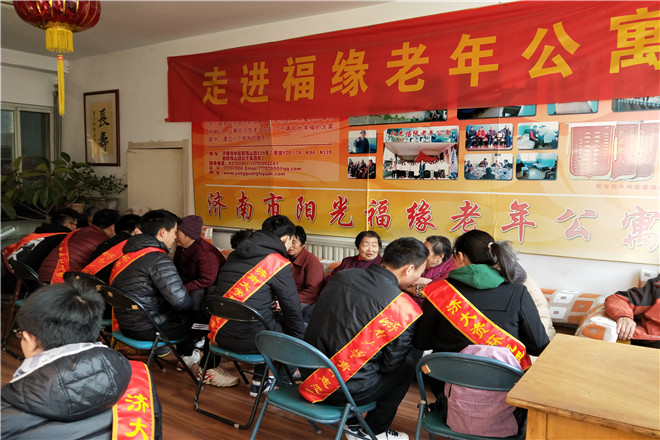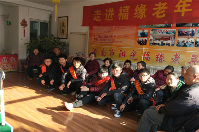上午九时,服务队成员到达福缘老年公寓,见到了早早等在门口的老人们,天气寒冷,志愿者扶着老人们到屋内坐下,热情地与老人们聊起家常,询问他们的身体状况,讨论生活的点点滴滴。期间几位老人聊起了自己那个年代的故事和自己的子女家庭,还关切地询问了同学们在大学的学习情况和生活。在了解目前社会上的就业情况后,老人们给出的评论让同学们受益匪浅,可谓“听君一席话,胜读十年书”。交谈过后,一位老人带头唱起了经典的民族歌曲,其他老人演唱样板戏,跳交谊舞,随后志愿者们轮番上台,表演歌曲、相声等节目,老人们兴致高昂,鼓掌叫好,场面十分热闹。最后同学们嘱咐老人多加衣服,注意身体,老人也告诫同学们要在最好的年纪里,珍惜时间,有所作为。