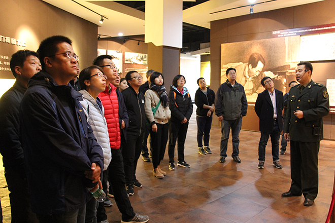 在莱芜战役纪念馆,由讲解员带领老师们先后参观了展览馆和全景画馆。展览馆内,党员们怀着对革命先烈无比崇敬的心情,依次参观了序厅、战前厅、战役厅、支前厅、英烈厅五个展厅,仔细观看了纪念馆陈列的近千件图片、实物和多媒体影像资料,深刻体会到战役的艰苦惨烈,人民军队为了战役的胜利,为了人民解放事业前仆后继、浴血奋战的奉献精神。在全景画馆,党员们观看了采用现代高科技手段,融合声、光、电、形于一体的莱芜战役决胜阶段的模拟场景,深刻感受到当年解放军浴血沙场,英勇歼敌的战斗场面。