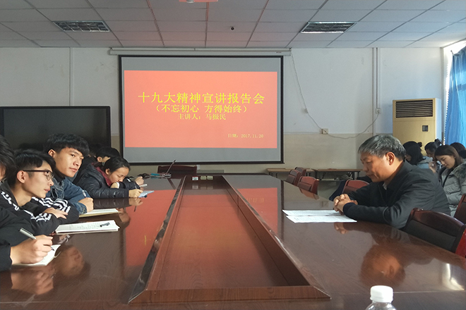 11月20日,资源与环境学院第十六期入党积极分子培训班于第九教学楼301室顺利开班。培训班第一讲由学院党委书记马振民做了题为“不忘初心,方得始终”之十九大精神宣讲报告会。