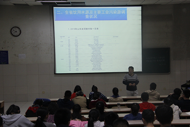刘本华老师从水资源污染的背景、全省典型饮用水及工业污染源的污染调查分析、水资源专业的机遇与挑战三个方面向在座同学进行逐一讲解。随后,刘老师就全省的水污染问题对同学们进行讲解,一桩桩典型的事例都在向同学们展示着水资源污染的现况及其严重性,同学们深刻认识到水资源所面临的严峻环境以及保护水资源的紧迫性。最后,刘老师通过介绍水利类专业机遇与挑战同时存在的问题,鼓励同学们勇于创新、善于思考、乐观向上,呼吁同学们直面困难、迎接挑战、把握机遇,