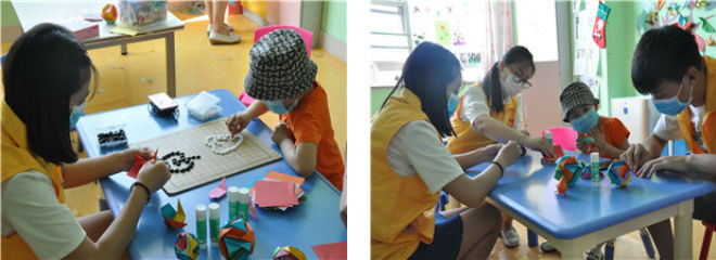 下午三点半,病房学校准时开课,在郭老师的带领下,志愿者和孩子们共同开始学习日本织锦折纸。由于织锦折纸的原材料卡纸较硬,孩子们常年打针的小手难以做到老师的要求把卡纸折到位,志愿者们手把手的帮助孩子们按照他们的思路把卡纸折好。大家齐心协力,很快一个个精美的成品呈现出来,孩子们的小脸上露出了自豪的笑容。简单的游戏过后,志愿者为小朋友变了一个化学小魔术:将装有小苏打的气球套在盛有白醋的饮料瓶瓶口,再将气球中的小苏打迅速倒入瓶中,只见气球慢慢膨胀起来。孩子们疑惑的追问志愿者们是怎么做到的。志愿者向小朋友们解释过实验原理之后,小朋友们纷纷亲切的称呼他们为小老师。活动结束后,志愿者表示:“以后要继续做孩子们的小老师,帮助他们学习到更多知识,感知更多生活的美好。”