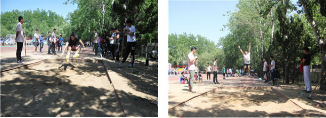 4月27日下午,在春风的吹拂下,学生男子甲组跳远决赛在济南大学北苑操场拉开帷幕,资源与环境学院李言和彭兴启同学在男子甲组跳远决赛中过五关斩六将,击败众多对手,最终分别获得了第五和第八名的好成绩,为资源与环境学院再争殊荣。