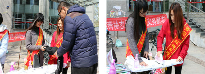 为增强学生志愿服务意识,进一步建设和谐美好的校园,3月26日,资源与环境学院青年志愿者协会于八食广场开展“响当当”义务熨衣活动,旨在提高同学们的生活技能,更好地服务广大师生。