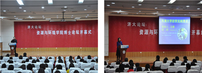10月31日,由济大论坛主办,资源与环境学院承办的资源与环境博士论坛在第二学术报告厅开幕。论坛邀请刚刚从国外访学回来的王惠教授、李庆国副教授,新进博士魏东、刘伟、卢岩、张睿担任博士论坛主讲人,他们从《西澳大学访学见闻谈》、《城镇新型污水处理技术现状及未来展望》、《在知识中认识自己,让梦想起航》、《我的成长与研究经历——付出和收获》、《英国的水问题及Exeter访学体会》、《从专业到就业》等六个方面,开展学术交流、学涯规划、就业指导等方面的交流和研究。资源与环境学院党委副书记、副院长侯启海老师主持开幕和论坛。