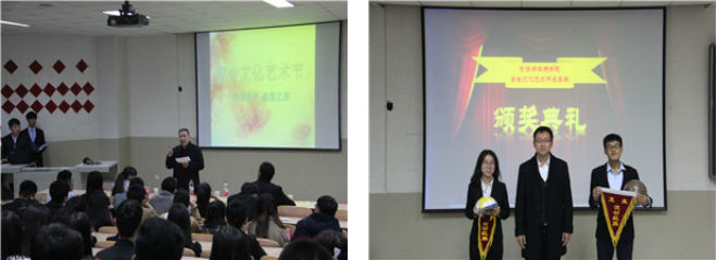 随后,十二个优秀宿舍代表上台用精彩的PPT展示了宿舍的装饰情况和同学们日常的生活。大家良好的精神面貌感染了在场的老师和同学,现场不断爆发出热烈的掌声。期间“你划我猜”游戏环节精彩有趣,现场气氛融洽。展示完毕后,学生代表向大家介绍了卫生评比标准和查夜规章制度,督促和激励大家维护宿舍整洁,严格遵守学院规章制度。