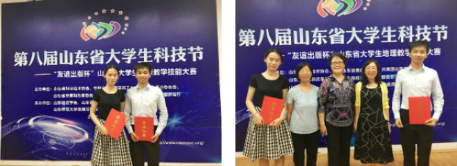 9月25日,由山东省科学技术协会、中共山东省委高校工委、共青团山东省委员会、山东省发展和改革委员会、山东省经济和信息化委员会、山东省教育厅主办,山东地理学会承办的第八届山东省大学生科技节——“友谊出版杯”山东省大学生地理教学技能大赛圆满落幕,济南大学资源与环境学院地理科学(师范类)专业袁冬、赵荣鑫在指导老师周保华、刘展宏、解伏菊和谷长强的指导下分别荣获特等奖和三等奖。