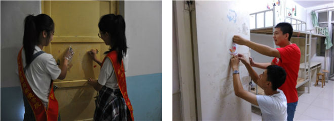 9月8日,资源与环境学院清泉灵水环保志愿者服务队分别来到位于学一、学三十五的新生宿舍开展志愿服务活动,清理宿舍中残留的广告贴纸,并张贴温馨提示。