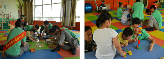 下午两点,志愿服务队提前来到康复中心,一丝不苟的和工作人员交流学习注意事项,为接下来的帮助活动做好准备。随后,志愿者们迎来午睡刚醒的小朋友们,在老师的安排下,学院志愿者分成两组,分别帮助中心的小朋友学习数学计算题和古诗背诵。志愿者们耐心的为小朋友们朗读古诗,帮助他们背诵记忆,或者细心讲解数学计算,改正孩子们的错误。课余期间,志愿者陪伴孩子们一起拼拼图、玩积木,小朋友们都露出欢乐的笑脸。在同学们细致认真的态度下,本次志愿服务活动顺利结束。