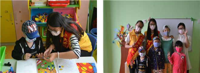 下午两点,志愿者们到达目的地,在有序整理了玩具并对桌椅地面清洁消毒后,午睡刚醒的孩子们陆续来到病房学校开始上课。志愿者和孩子们共同完成拼图游戏,孩子们稚嫩的小脸上露出欣喜的笑容。