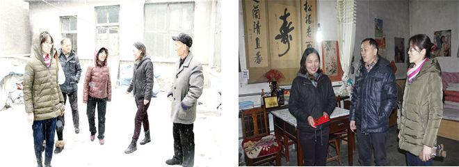不管是零下十几度的气温,还是湿滑的路面,都没能阻挡学院家访小组的脚步。领导和老师们一路冒着严寒,来到曹同学家中。曹同学的母亲看到老师们来访,热情的招待大家进屋取暖。家访过程中,老师们深入贫困学生家庭,与学生家长促膝交谈,嘘寒问暖,并送去了年货和慰问金。郭书记亲自将慰问金交给曹同学的妈妈,问候了学生的家庭情况及生活上的困难,并关切的向曹同学的母亲了解了曹同学的就业状况,表达了对学院困难毕业生的关心与重视。随后,老师们与曹妈妈聊起了家常,闲聊中,老师们不难感受到一个单亲妈妈的艰辛与伟大,学院老师不仅向曹妈妈介绍了学校对特困生在学习和生活上的关注及各种资助政策,还说起了曹同学的在校表现,给予了曹同学充分的肯定,并为已经毕业的曹同学送上了美好的祝福。曹妈妈对此深受感动,激动地连声说:“学校对学生太关心了!感谢领导和老师!孩子生活在这个大家庭里是我们的幸运。”