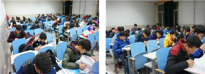 恶劣的天气丝毫不能阻挡同学们追求梦想的脚步,同学们高涨的学习热情仿佛一团团燃烧的火焰驱散了冬日的寒冷。同学们陆续找到自己的座位后,便开始全神贯注,认真地学习自己的功课,部分同学低声讨论问题,整体营造出和谐的学习氛围。同学们沉浸在知识的海洋里,丝毫不被外界因素干扰。整节自习持续近两个小时,同学们的专心程度似乎已经忘记了时间的流逝,直至八点过后,才陆续离开教室。
